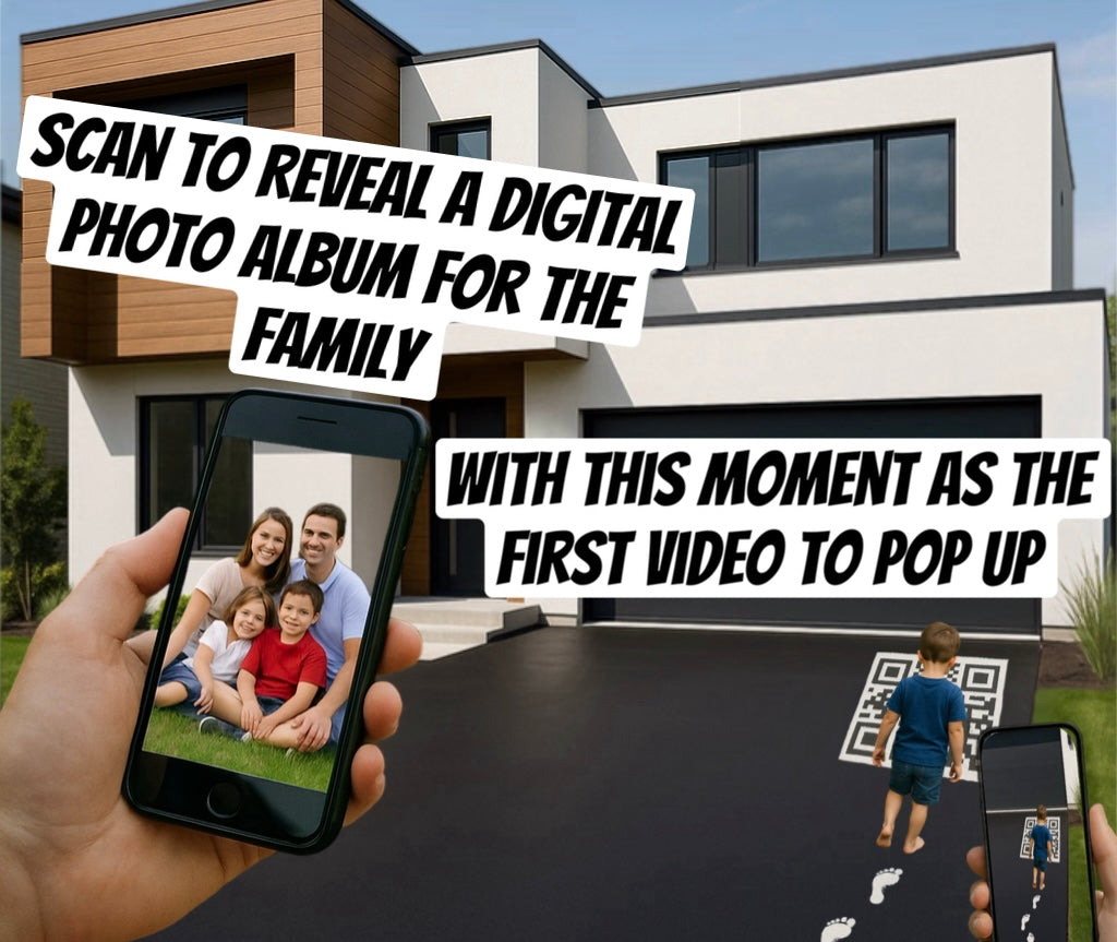 Instead of Everyone’s Photos Living in Separate Phones and Cloud Accounts, We Paint a Custom QR Code Right Onto Your Driveway That Links to One Shared Family Gallery. It’s a Digital Time Capsule Where Everyone Can Upload and Relive the Moments That Matter—Birthdays, Holidays, Random Laughs on the Porch. A Permanent Way to Keep Your Family’s Story in One Place, Right Where It All Happened. And If It Starts to Fade, We’ll Come Repaint It Like It Never Left.